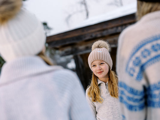 VILJA Super-soft classic knitted beanie with pom pom - Beige